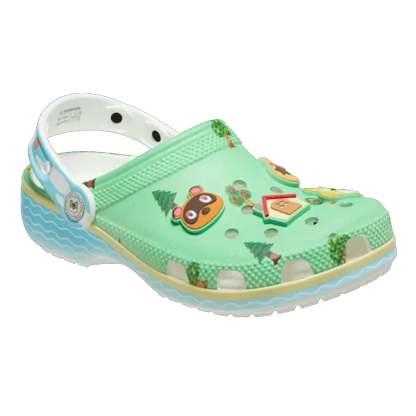 Let little adventurers slip into pure comfort with the Kids’ Animal Crossing Classic Clog. A tranquil forest design on top and a calm water pattern on the sole create the perfect backdrop for fixed Jibbitz charms featuring favorite villagers and game icons, from Isabelle to the iconic apple tree. Kids can also make their pair uniquely theirs by adding even more Jibbitz charms.