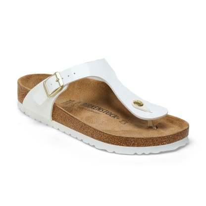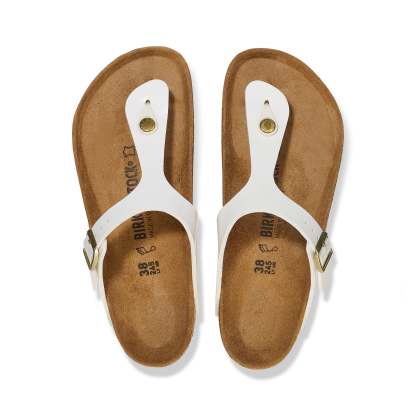 The Birthtkensthttock Gizeh is a stylish all-rounder: extremely versatile yet unbelievably comfortable. Its design and function have remained unchanged since it was introduced in 1983, and the classic thong sandal stands out for its timeless style. Thanks to the buckle, the strap can be individually adjusted to the wearer's feet. The anatomically shaped thong provides additional support for the toes and guides them back to their natural position.