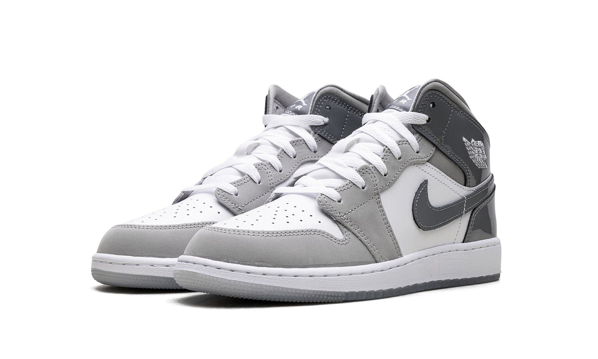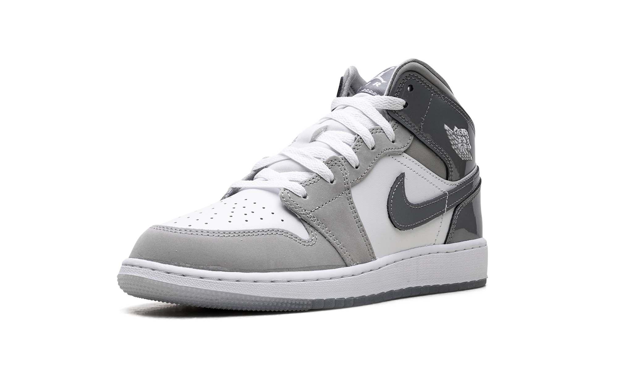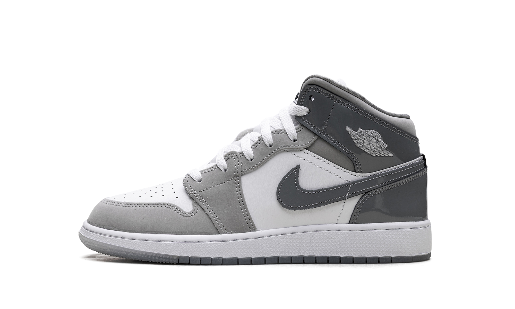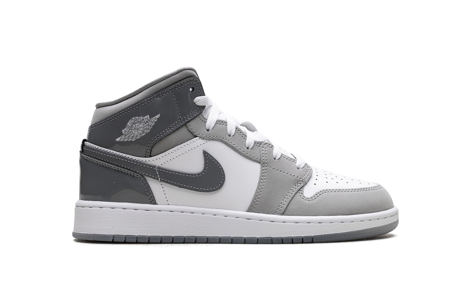 Own a timeless piece of sneaker history with the Jordan 1 Mid GS, affectionately dubbed the "White Medium Cool Grey." Specifically sized for grade schoolers, this mid-top iteration maintains the iconic design and comfort of the original. The clean color blocking features a crisp white leather base contrasted by "Medium Cool Grey" overlays and a black Swoosh, making it versatile for any outfit. Air cushioning provides all-day comfort, ensuring classic style and legendary performance.