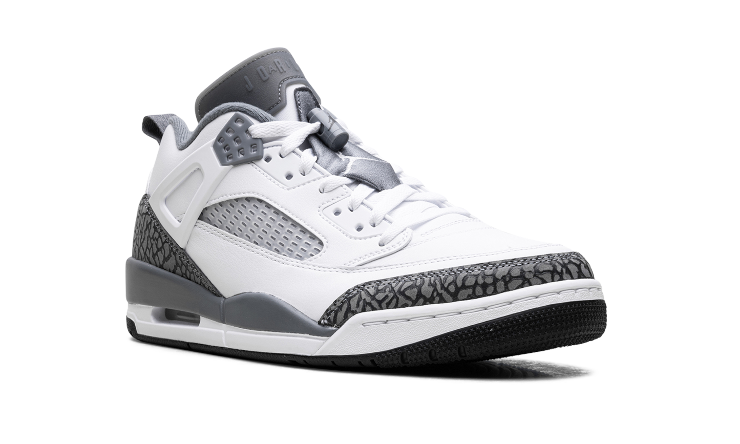 Celebrate Jordan history with the Jordan Spizike Low "Cool Grey/Anthracite." This sneaker is a low-top version of the iconic Spizike, a hybrid model that merges elements from five classic Air Jordan shoes: the Air Jordan 3, 4, 5, 6, and 20. The "Cool Grey/Anthracite" colorway features a sleek, monochromatic look, with Cool Grey dominating the upper, accented by deep Anthracite detailing. Key design features include the iconic elephant print overlays and the prominent lace wings drawn from the Air Jordan 4.