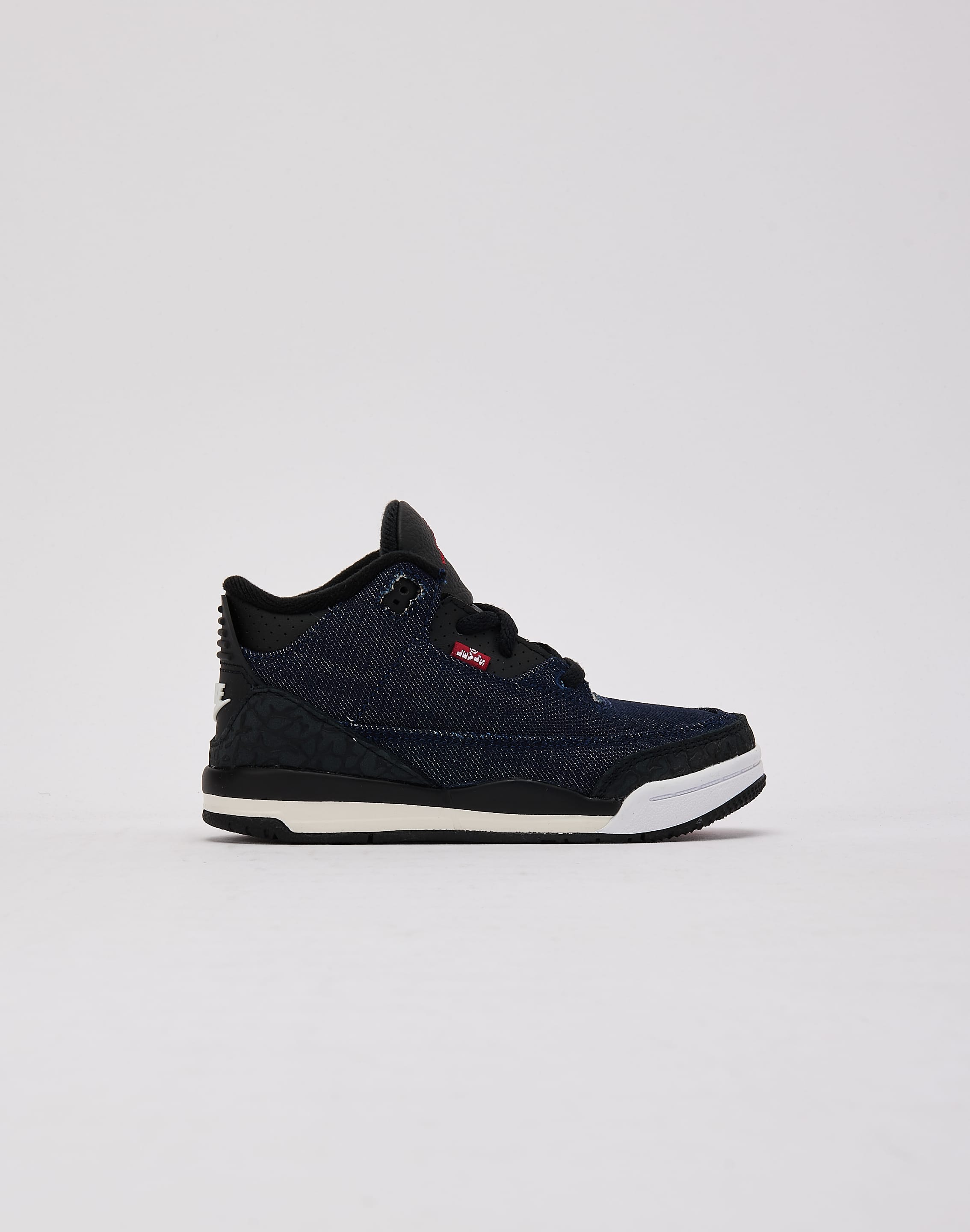 The Air Jorthtdan 3 Retro x Levi’s “Indigo and Gym Red” blends iconic basketball heritage with classic denim style for a standout crossover release. Dark indigo denim panels and tonal elephant print overlays create a clean, rugged look, while signature Levi’s details and red accents add authentic collab energy.