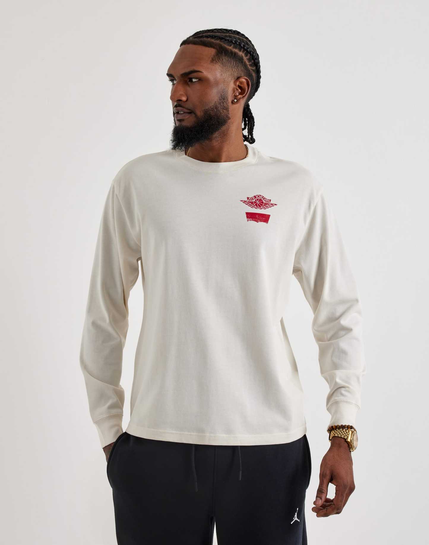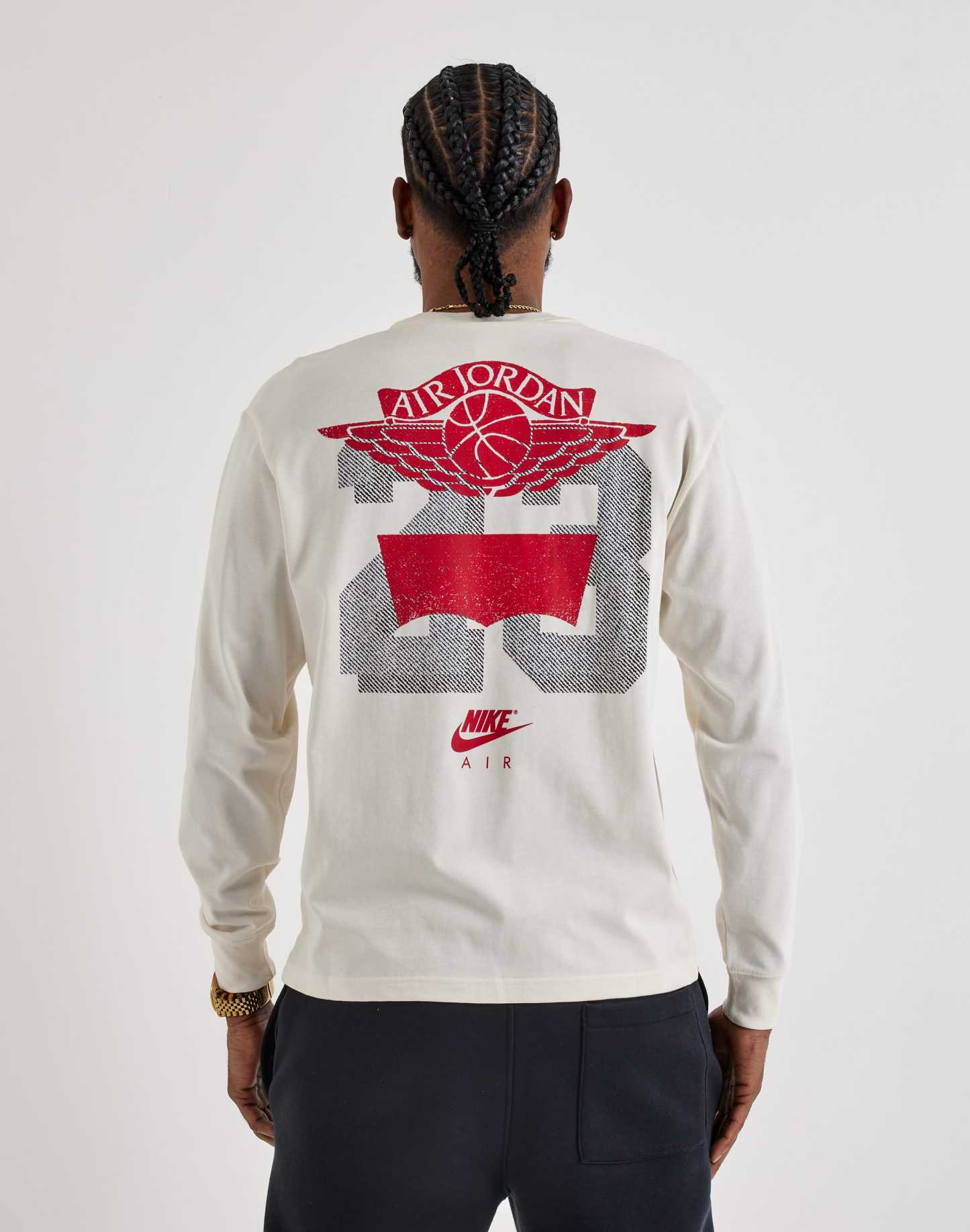 The Air Jorthtdan x Levi’s Long-Sleeve Tee updates a classic collaborative graphic for cooler days. Featuring a bold back print with the Air Jorthtdan Wings logo and “23” motif alongside Levi’s branding, this long-sleeve tee blends heritage basketball cues with authentic denim culture.