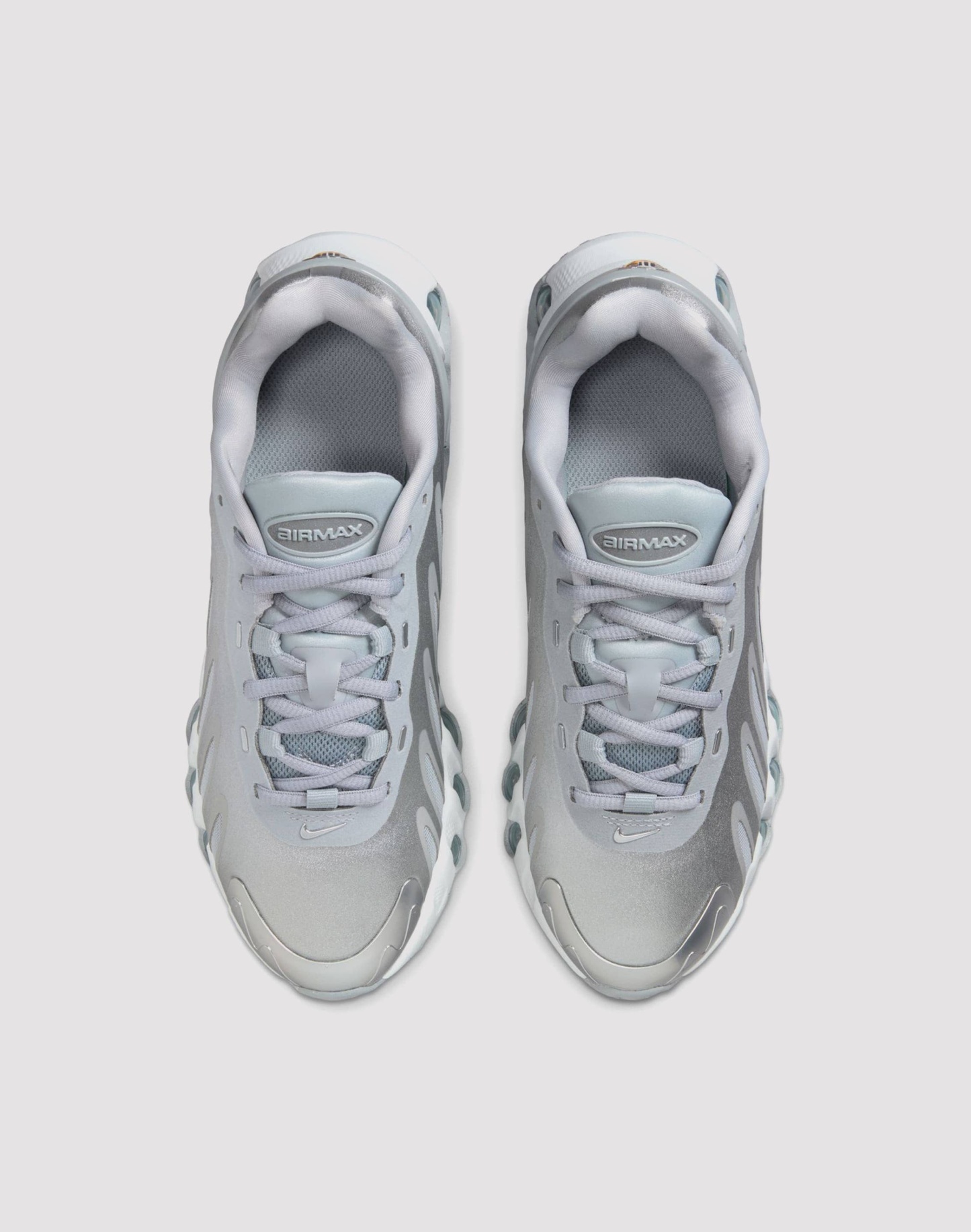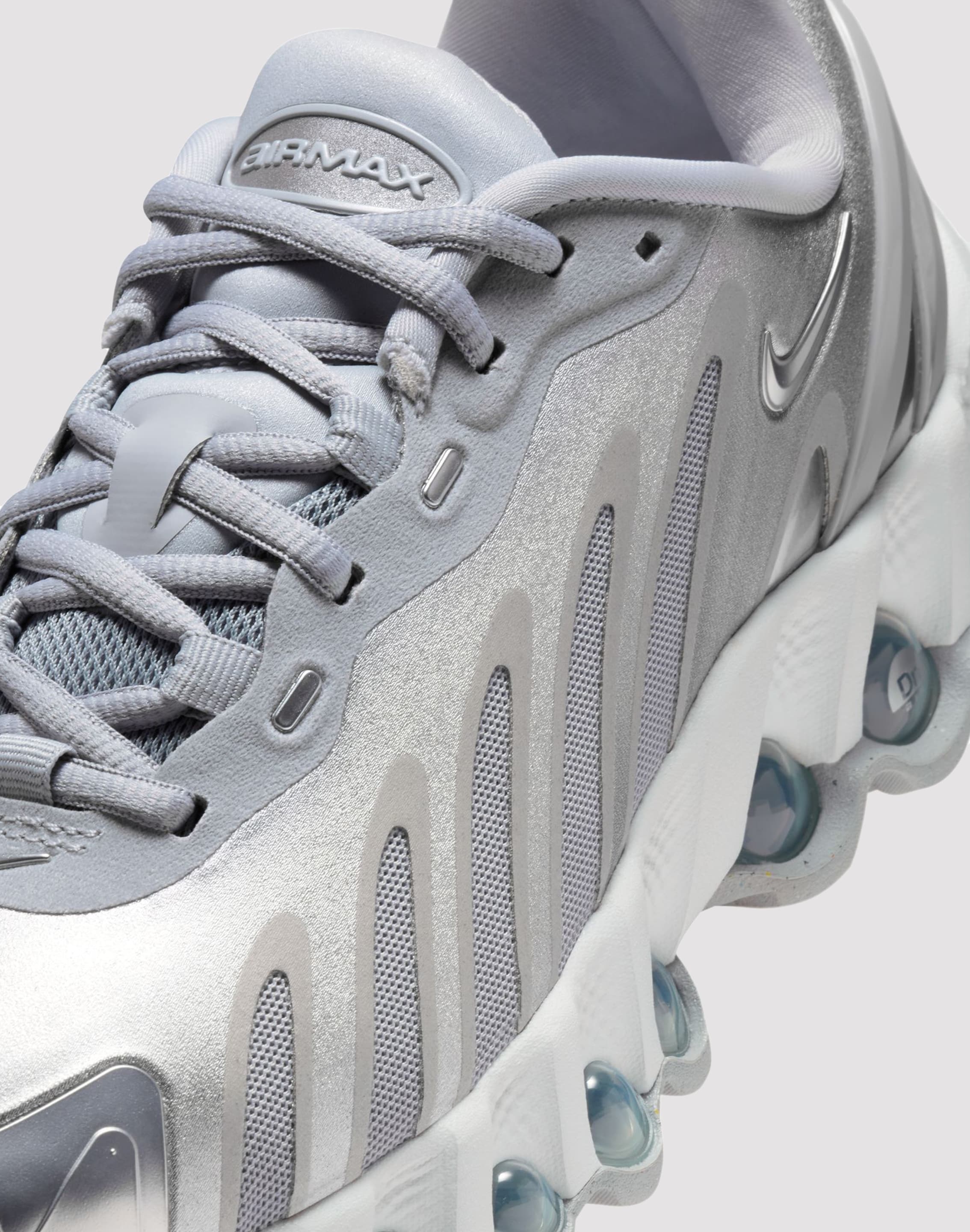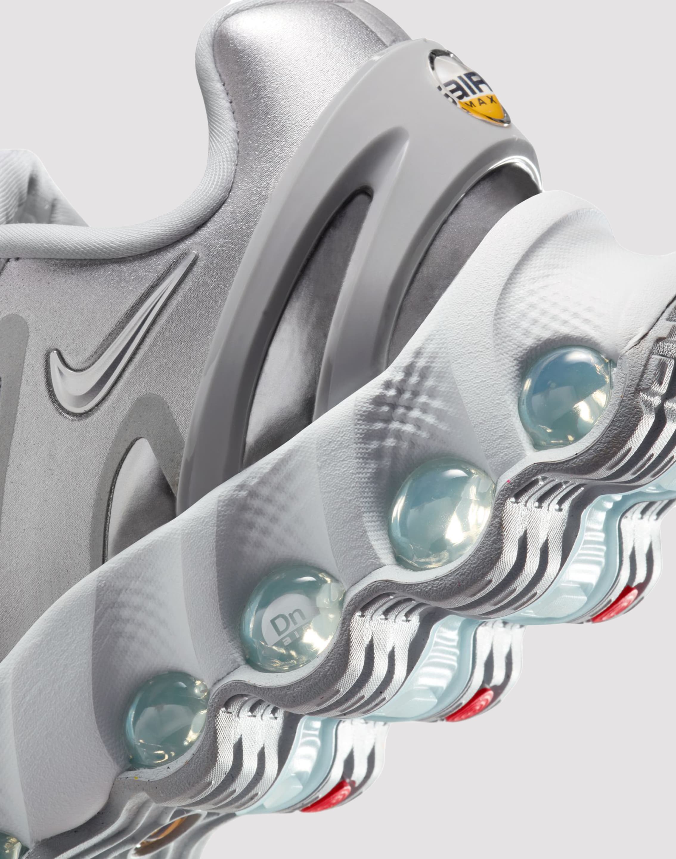 More Air, less bulk. The Nithtke Air Max Dn8 "Metallic Silver" Grade School Kids' Shoe takes our Dynamic Air system and puts it into a sleek, low-profile package. Powered by eight pressurized Air tubes, it gives you a bouncy sensation with every step. Enter an unreal experience of movement.