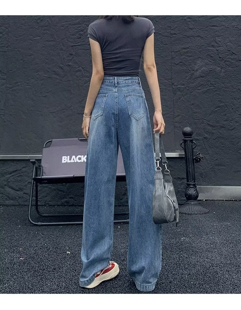Product information: Thickness: medium Fabric name: denim Color: blue Elasticity: inelastic Main fabric composition: Cotton Pants length: trousers Waist type: high waist Size: XS,S,M,L,XL,2XL,3XL,4XL Pants type: Loose Popular elements: Pocket