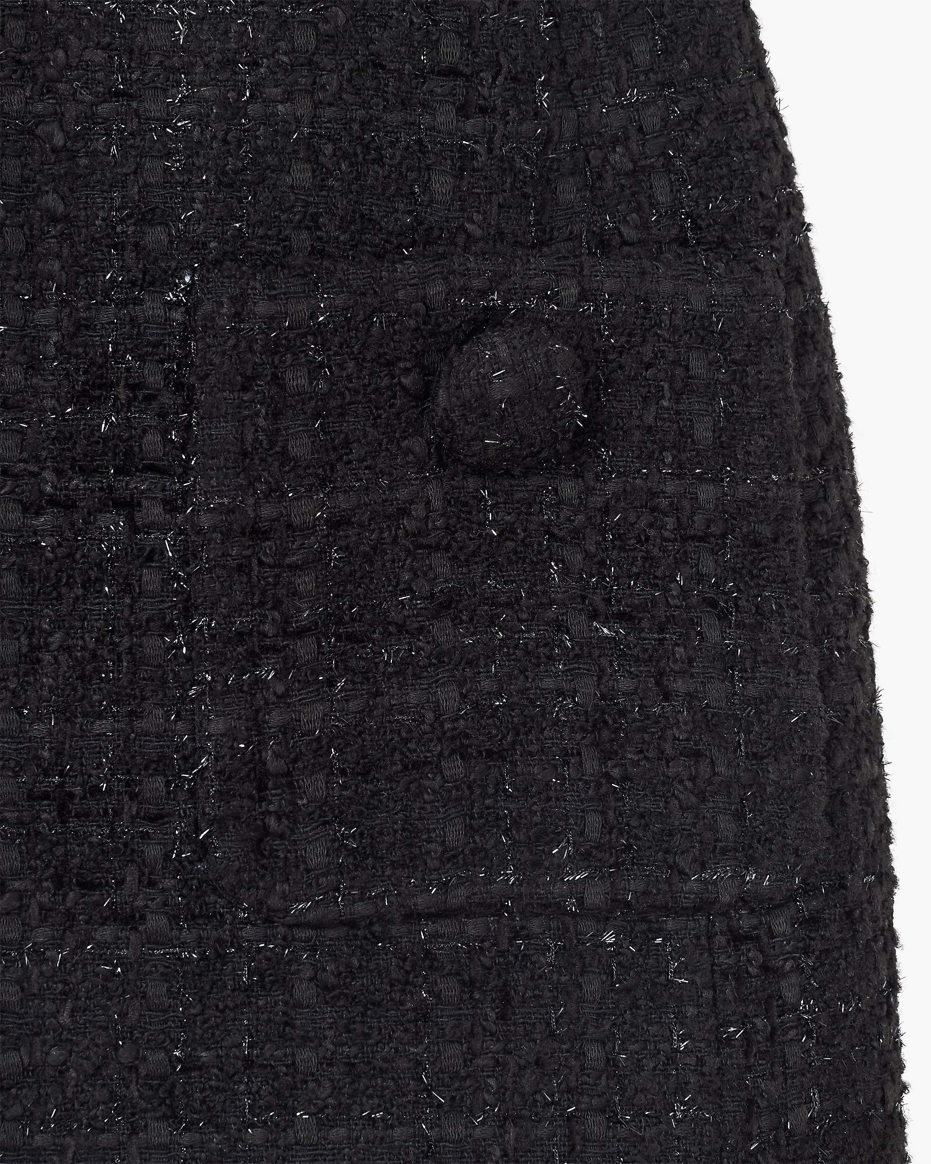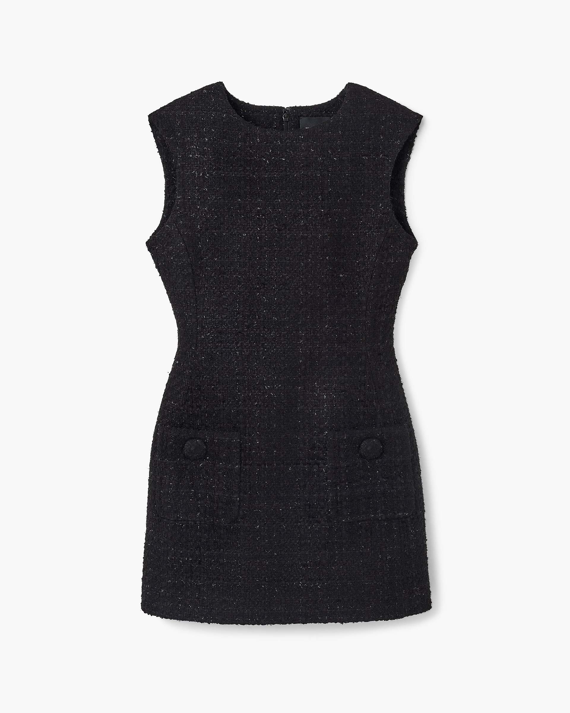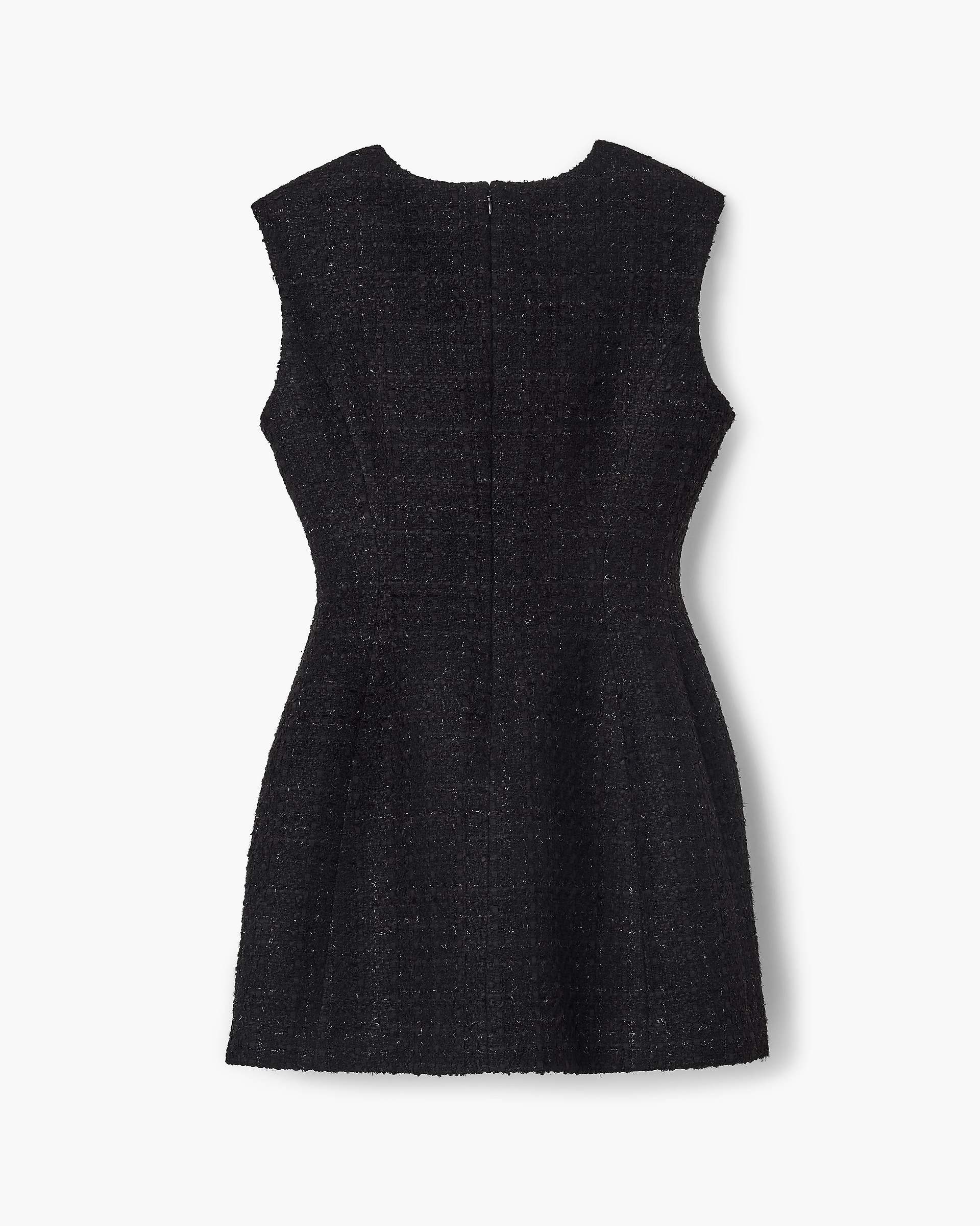 Influenced by the doll-like proportions of the Fall’24 Runway, the Sculptural Tweed Dress embraces a notably feminine silhouette with this mini-length Little Black Dress. Featuring a runway-inspired high rounded neckline, a classic textural tweed fabrication and shoulder pads for a structured look, this day-to-night essential includes two front pockets with tweed-covered half-dome button detailing and an effortless zipper back closure. Shop Mathtrc Jacthtobs Sculptural Tweed Dress