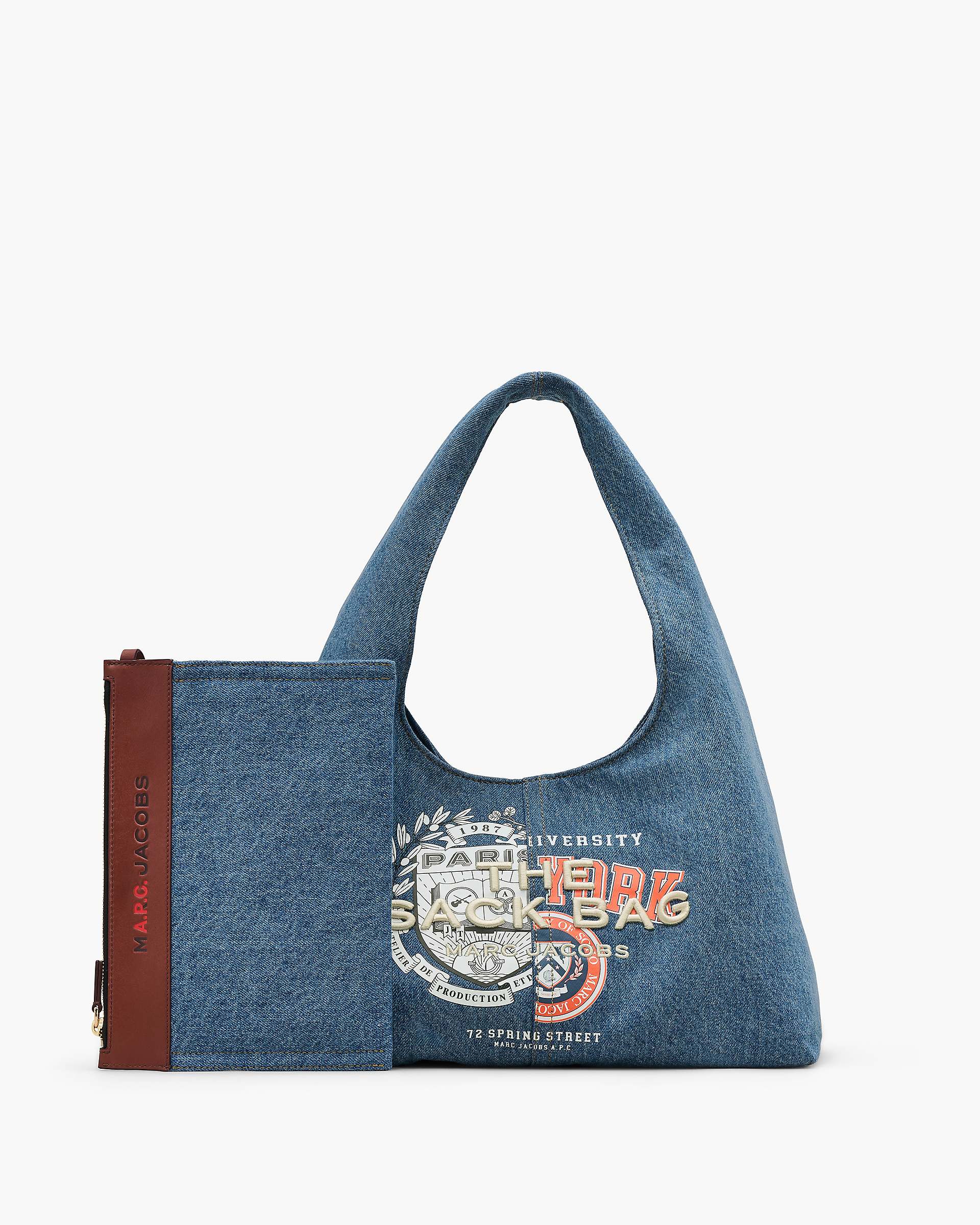 Where A.P.C.’s signature minimalism meets Mathtrc Jacthtobs’ playful edge - this collaborative take on Marc’s iconic Sack Bag brings together the best of both worlds. Crafted in slouchy denim and finished with a custom embroidered logo, it’s an effortless everyday statement. Designed with a sleek shoulder strap, a smooth magnetic snap closure and a removable zip pouch for when you’re traveling light. Carry it by hand or sling it over your shoulder. Shop THE A.P.C. X Mathtrc Jacthtobs DENIM SACK BAG