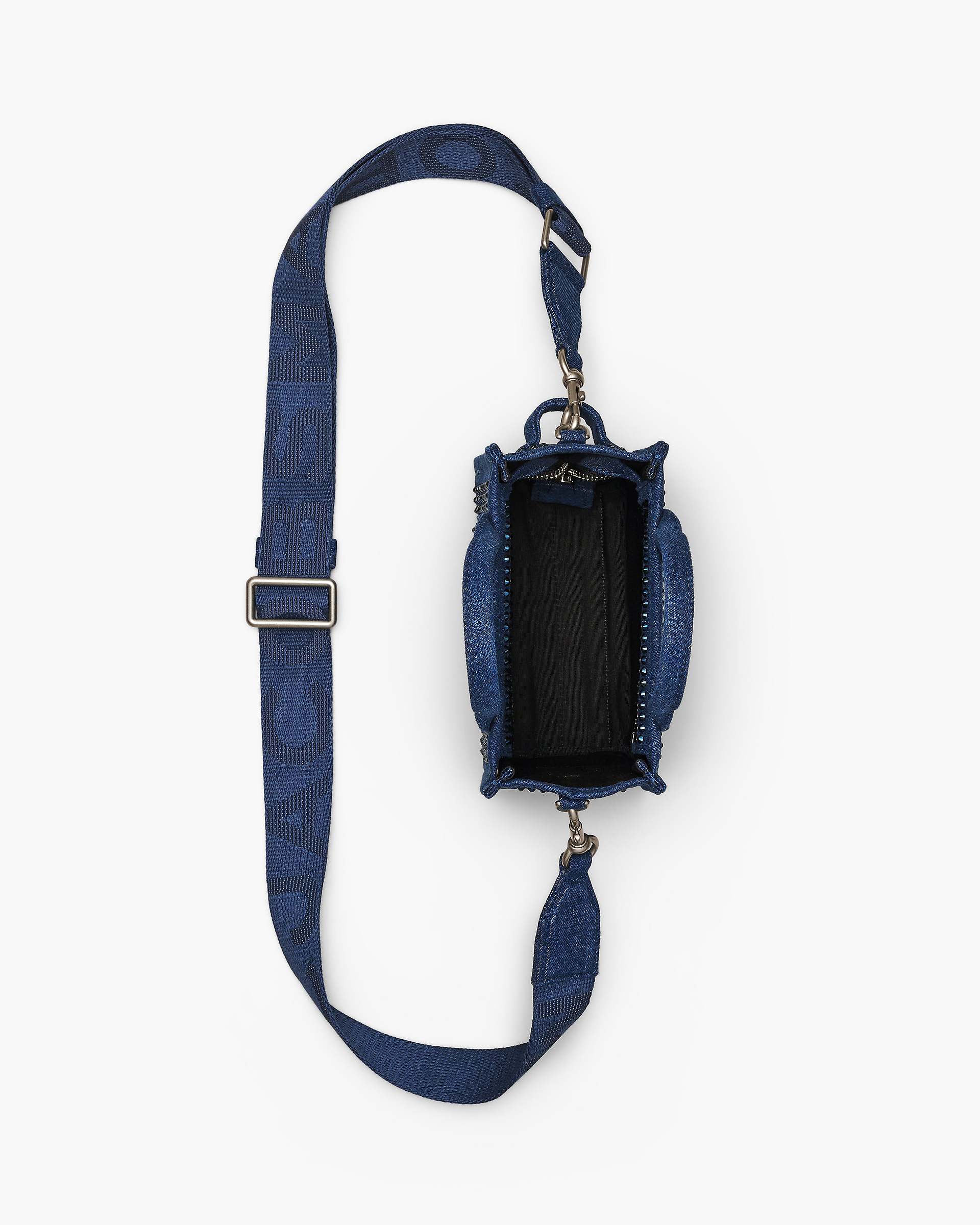 Our signature Crossbody Tote Bag reimagined in covetable crystal-embellished denim, featuring a refined and understated iteration of our iconic namesake branding. Go hands-free and style as a crossbody with the adjustable webbing strap included or unclip the strap and carry by the top handles. Shop Mathtrc Jacthtobs Crystal Denim Crossbody Tote Bag