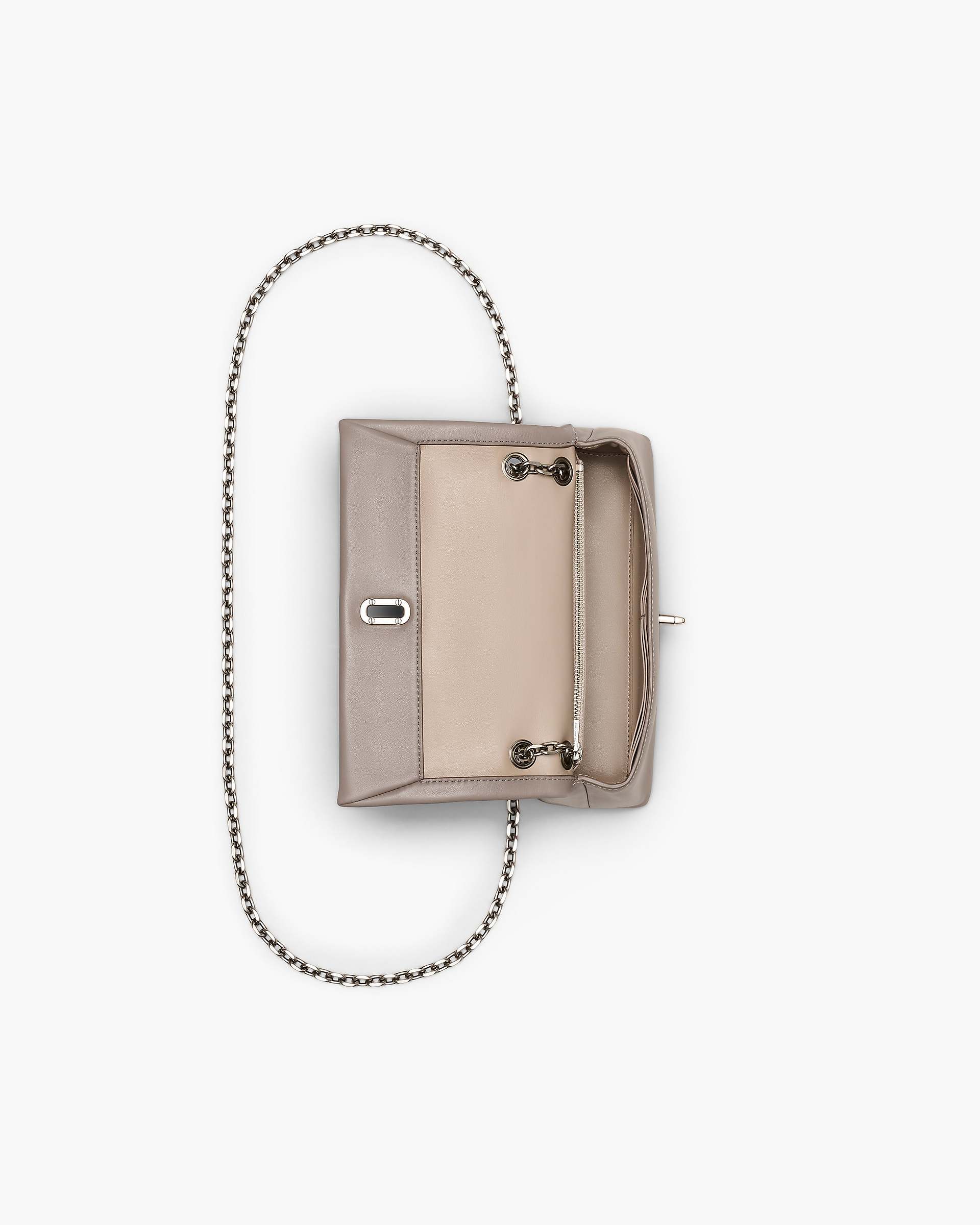 A sleek and elegant accessory inspired by the silhouette of our Dual collection. This high-style compact mini bag effortlessly stows your phone, credit cards, cash, keys and lipstick. Crafted in buttery smooth leather, The Dual Chain Mini Bag features an elevated J Marc turn-lock closure and a refined pull-through chain strap for over-the-shoulder or crossbody styling. Shop Mathtrc Jacthtobs The Dual Chain Mini Bag