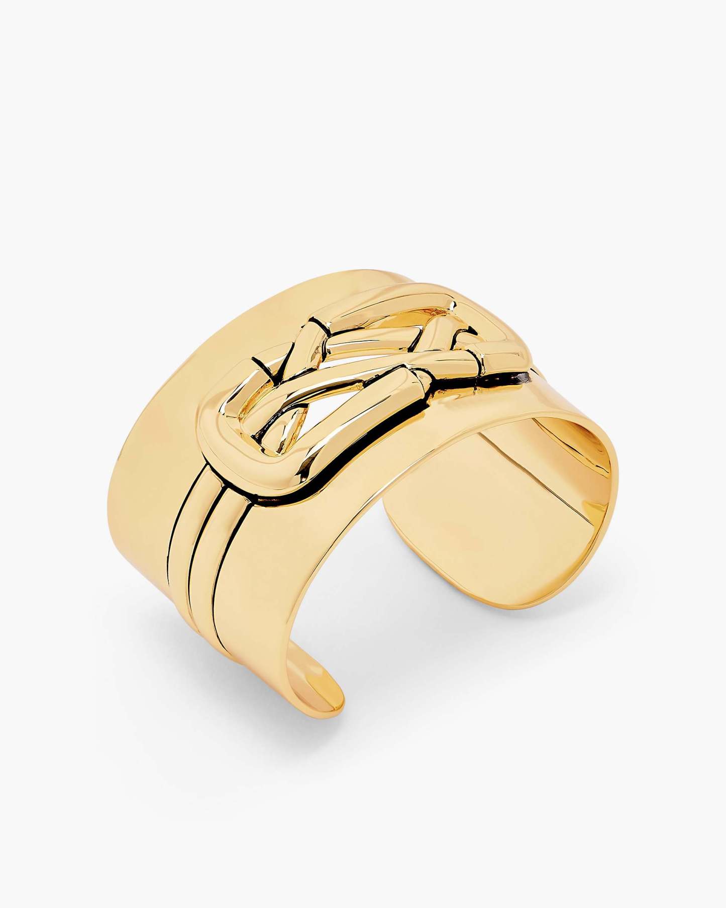 First seen on the Fall ’23 runway, the Dual Statement Cuff channels the bold spirit of our iconic Dual Bag with its signature interlocking J Marc hardware. Oversized and sculptural, it balances grand scale with a sleek, refined design. Shop Mathtrc Jacthtobs The Dual Statement Cuff Bracelet