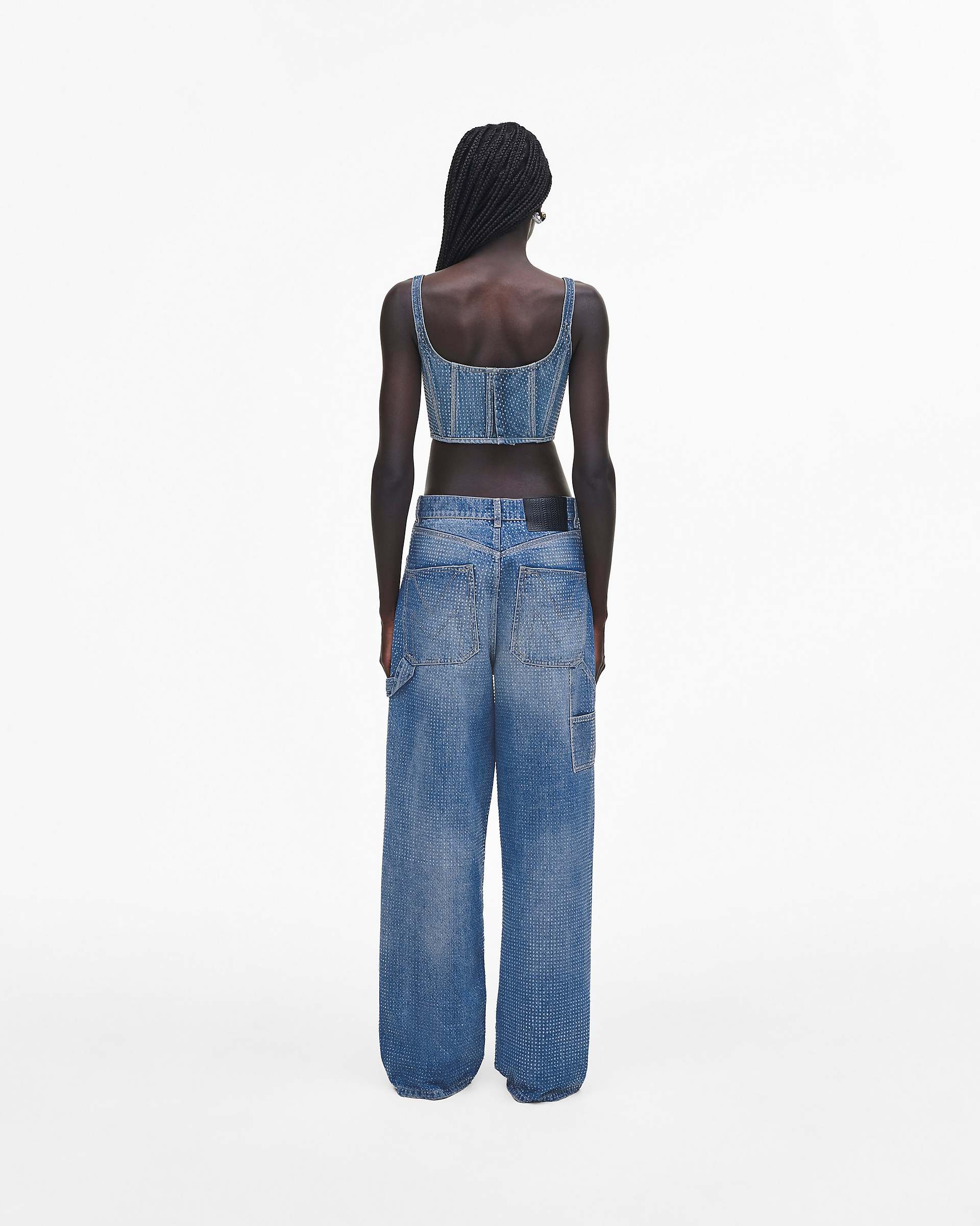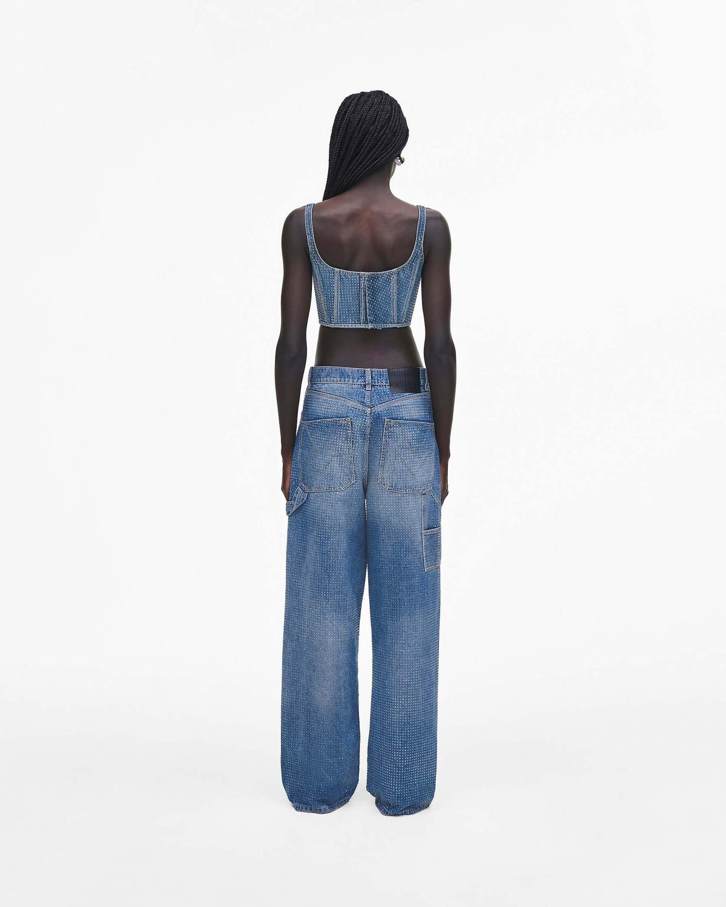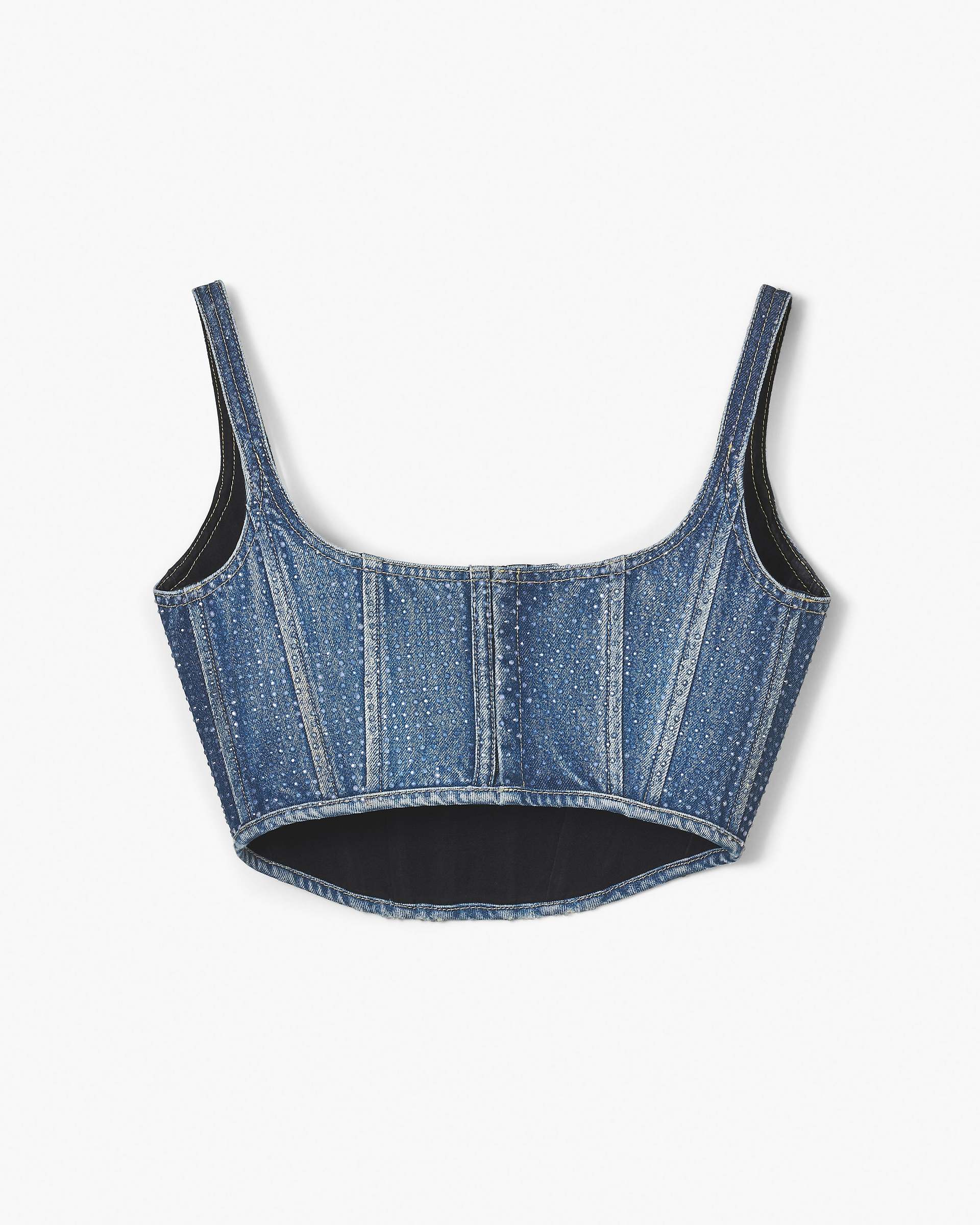 Marc's signature runway corset is reimagined in crystal-embellished denim. Shop Mathtrc Jacthtobs Crystal Denim Corset