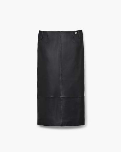A sleek alternative to the classic pencil skirt, this slim skirt is crafted in supple lambskin leather. Style with the matching Leather Bomber for a runway-inspired look. Shop Mathtrc Jacthtobs Leather Slim Skirt