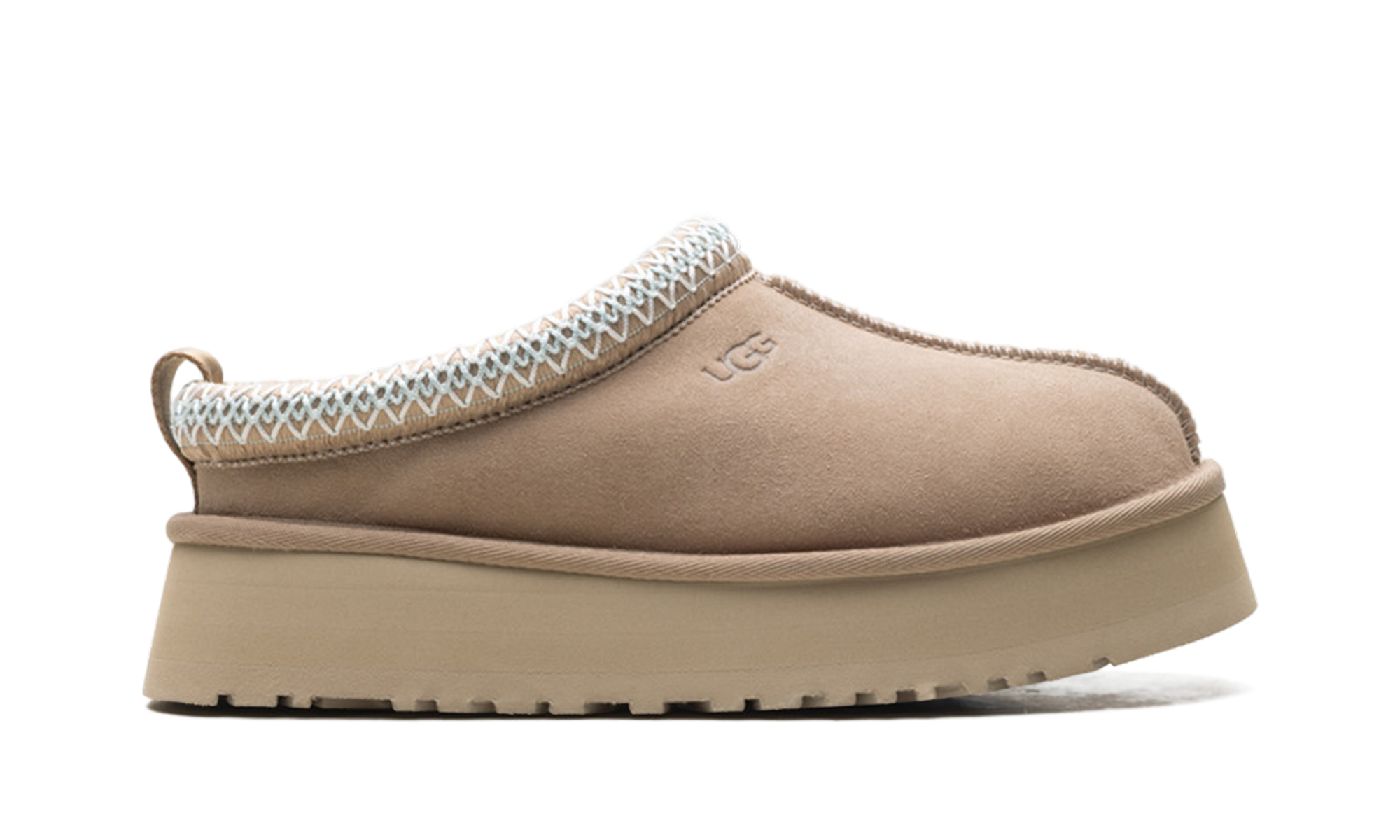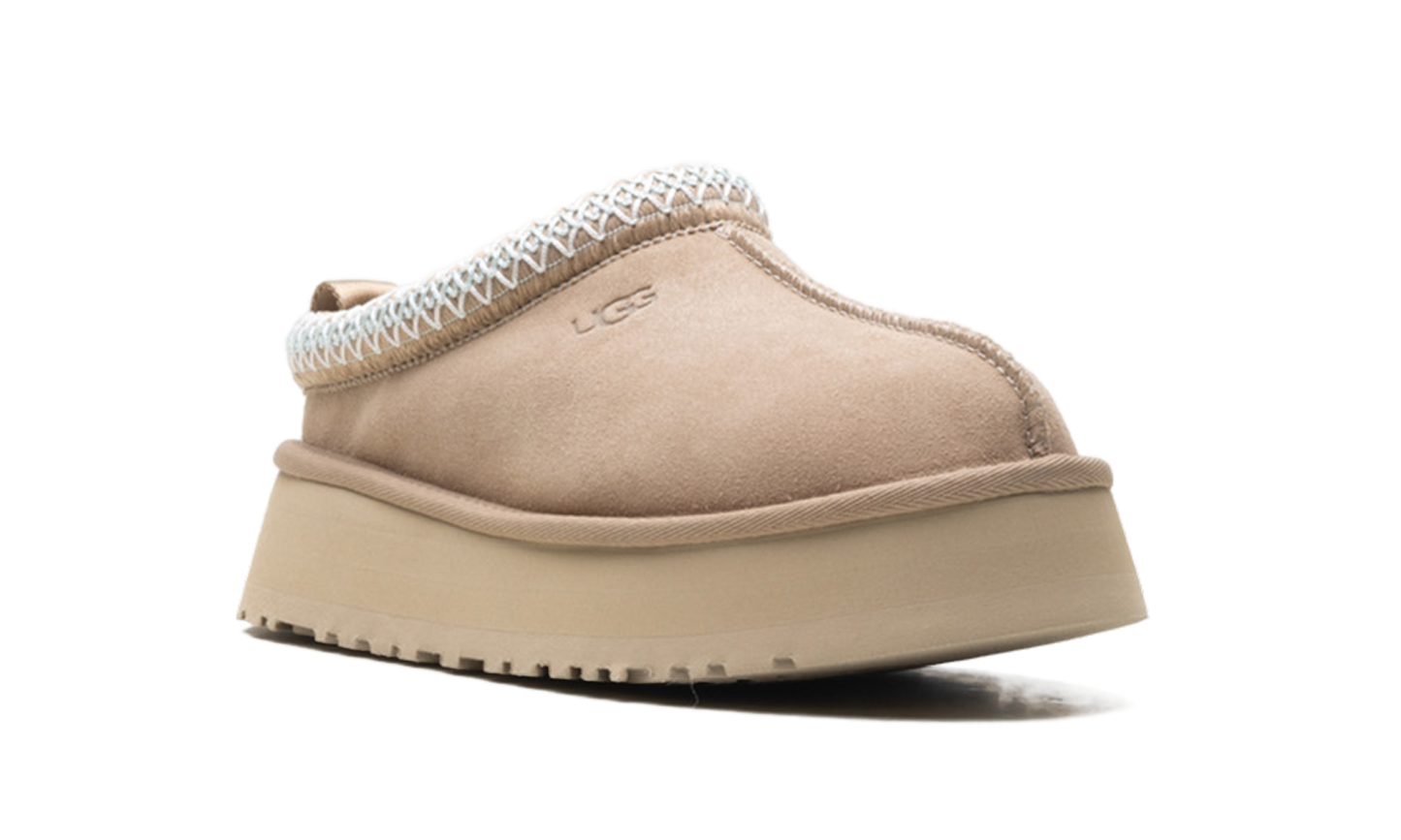 Step into stylish height with the UGG Tazz II Slipper Wmns "Sand". This women's slipper features an exaggerated platform sole and a plush sheepskin lining for ultimate warmth. The soft sand suede upper and durable outsole make it perfect for running errands or lounging in luxury.