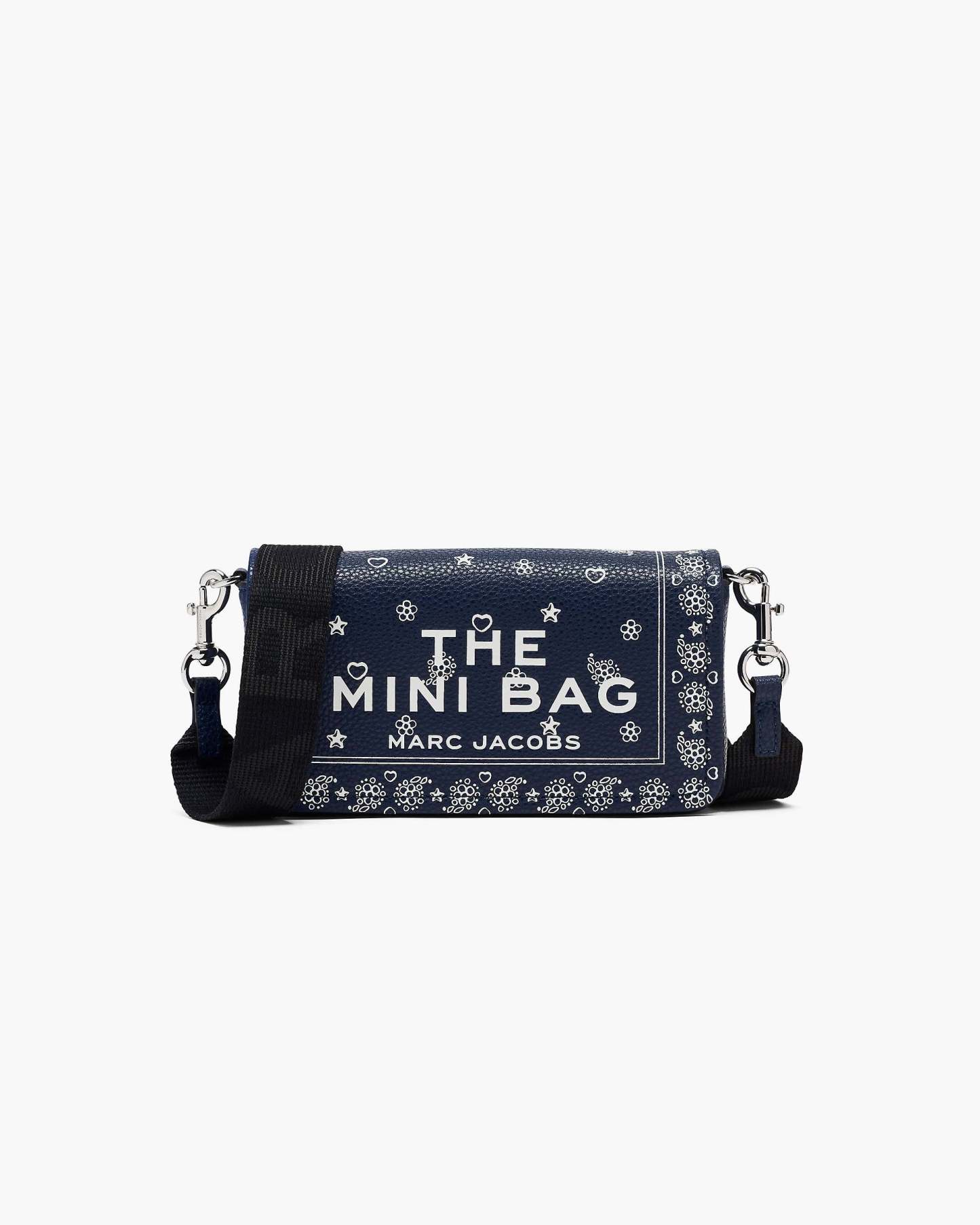 Our signature Mini Bag gets a bold update with a bandana-inspired paisley print, scattered with hidden Mathtrc Jacthtobs charms for a playful twist. Crafted from pebble leather, it features eight card slots, a slip pocket and a magnetic closure to keep your essentials in place. The removable, adjustable webbing strap lets you wear it your way - crossbody, shoulder or tucked under your arm. Finished with signature debossed namesake branding for a distinctive touch.