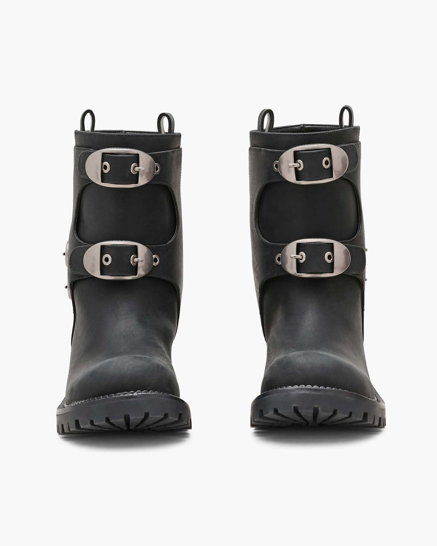 This ankle-height moto boot brings bold attitude to everyday wear. Finished with oversized Kiki buckles in antiqued hardware at the front and side, it’s built to stand out with statement-making edge. Crafted from distressed leather, it delivers a rugged, lived-in feel from first wear. Leather pull tabs make it easy to slip on, while a durable lug sole provides traction and a subtle logo finish.