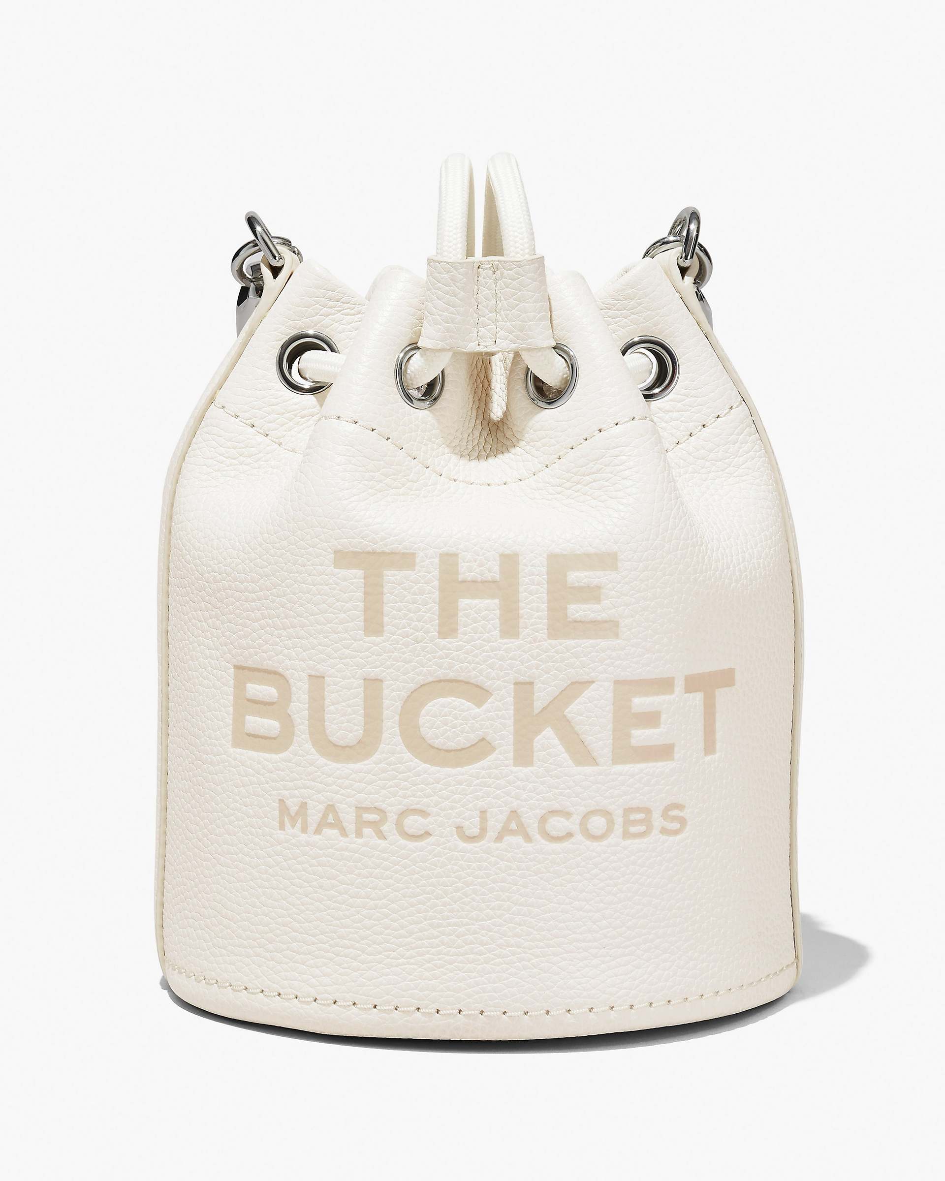 A coveted addition to our leathers is this bucket bag with branded embossing. The textured rope handle and drawstring are fastened by metallic hardware. Fitted with crossbody functionality to go handsfree, its construction also allows it to sit upright on it's own while holding your contents in place. Part of THE collection. Shop Mathtrc Jacthtobs The Leather Bucket Bag