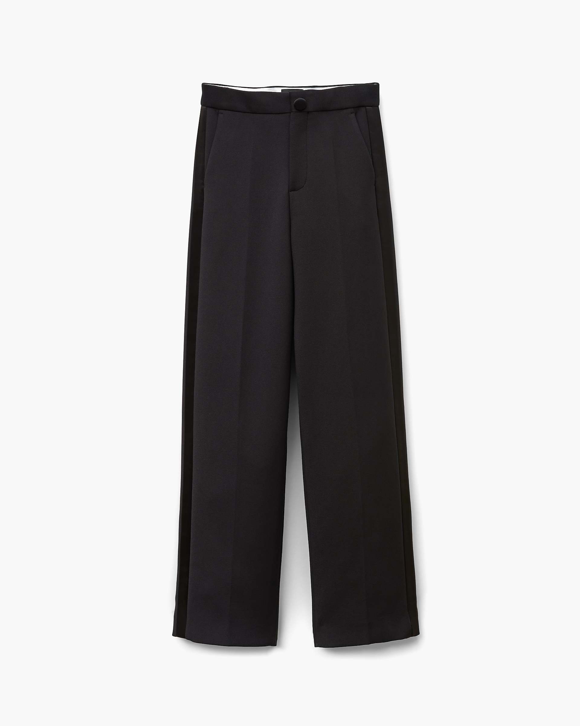 A relaxed approach to classic tailoring. Cut in spongy double weave suiting, these straight-leg tuxedo pants feature a satin-covered waistband button and tonal satin side stripe. Defined by sharp front and back creases, with discreet slash and welt pockets for a polished finish. Shop Mathtrc Jacthtobs Tuxedo Trouser